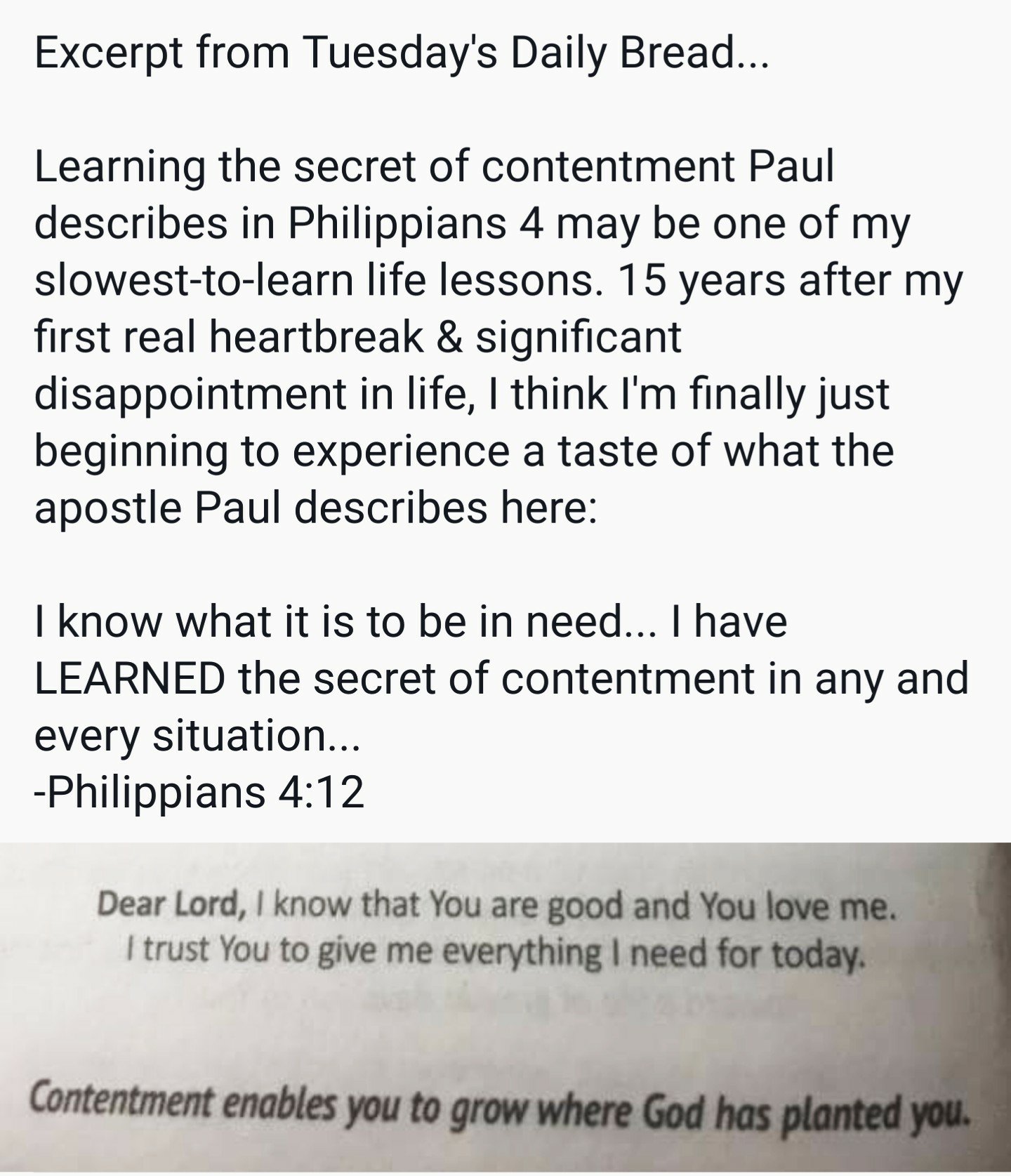 Contentment: Bloom Where You’re Planted! 🌱🌳 Posted on October 27, 2017 by Melissa Drobnak Parvin I’m grateful for all the lessons God has taught me about contentment over the years through heartache, disappointment, loss, job changes, and sickness. ✝️❤️ Excerpt below from October, 2016 Share this: Click to share on X (Opens in new window) X Click to share on Facebook (Opens in new window) Facebook Like Loading... Related